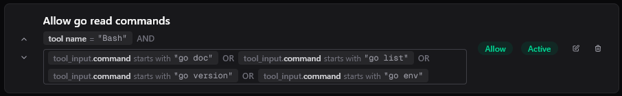Bulwark also allow for more nuanced rules rather than only glob. You can specify regex, string contains, nested and/or conditions and more. Here’s one of the policies in the Go pack as an example